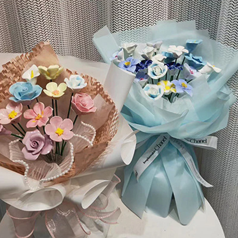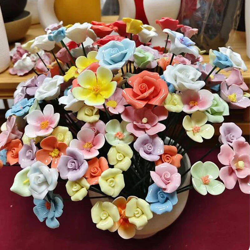 The flowers as well as the coloring are handmade and then fired, so each vase and flower may be a little different. Please understand that they may not be exactly the same.